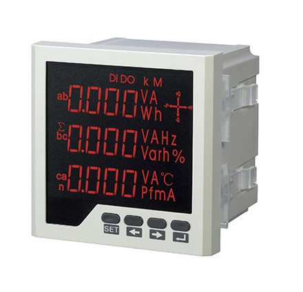 多功能监控仪表是高性能的监控仪表,具有高精度电力参数实时测量、谐波测量、正反向有功/无功电能计量、分时电能计量、分时电能定时抄表、电力品质分析、实时波形显示、事件记录、需量等功能,并配置有丰富的输入输出接口可用于现场设备状态的监测与控制,还集成了RS-485通讯接口,可与各种智能配电系统和能量管理系统集成,共享丰富的监测数据和电能质量数据。多功能监控仪表有着极高的性价比,可以直接取代常规电力变送器、测量仪表、电能计量表以及相关的辅助单元,应用领域非常广泛,如能源管理系统、电力监控系统、工矿企业、公共设施、智能建筑和开关柜等配电网络系统。